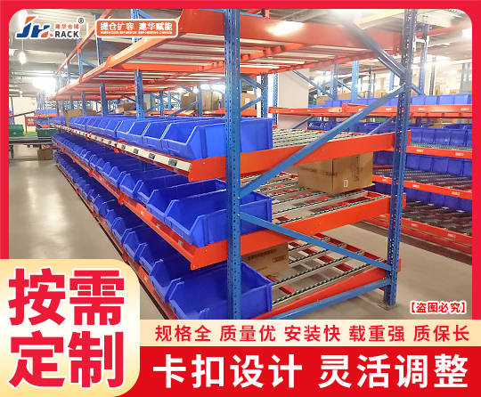流利式貨架常由中型橫梁式貨架演變而成,通過滾道將貨物從配貨端輸送到取貨端,貨物借助重力自動(dòng)下滑,可實(shí)現(xiàn)“先進(jìn)先出”作業(yè),使用成本低,存儲(chǔ)速度快、密度大。通常使用在企業(yè)的精益生產(chǎn)流水作業(yè)。