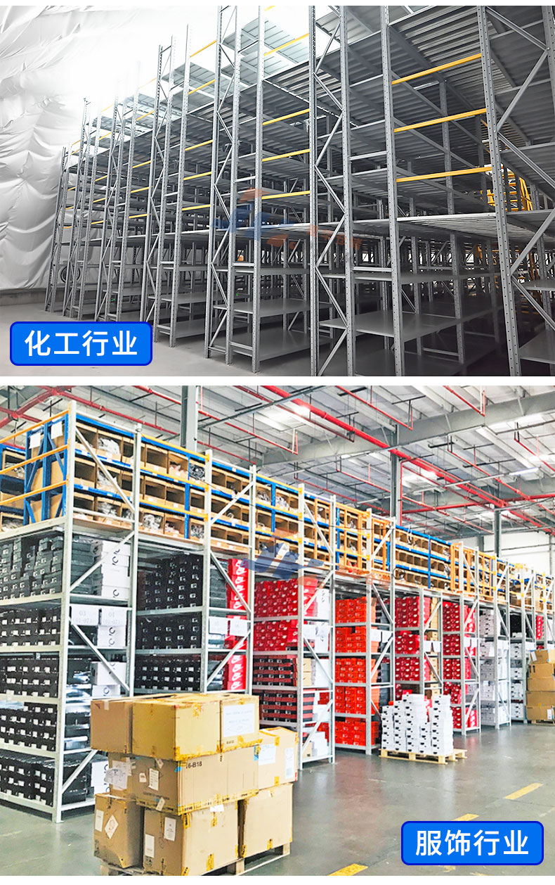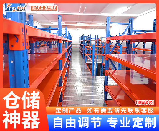 閣樓貨架,通常利用中型擱板式貨架或重型擱板式貨架作為主體支撐加上樓面板(根據(jù)貨架單元的總負載重量來決定選用何種貨架),樓面板通常選用冷軋型鋼樓板、花紋鋼樓板或鋼格柵樓板。