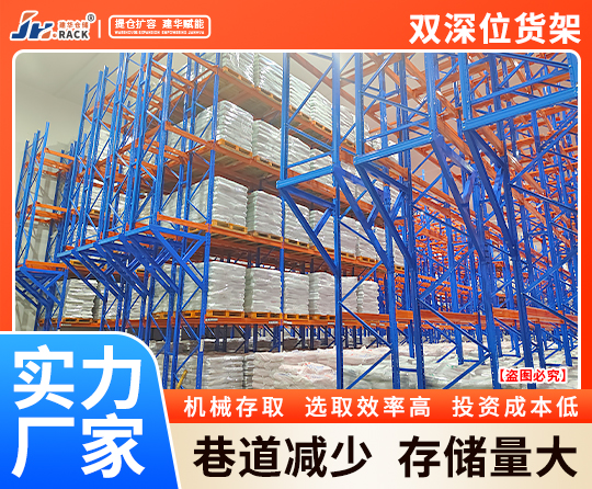 雙深位貨架/雙深度貨架由重型橫梁式貨架衍生而成,是一種采用剪刀式叉車,將貨架設(shè)計(jì)成雙排并列存放的貨架類型,可按照客戶需求做出適當(dāng)改變。