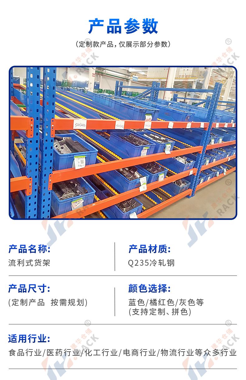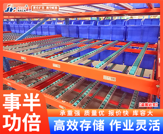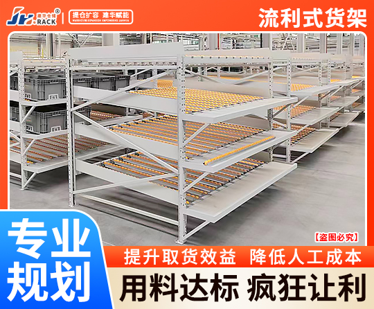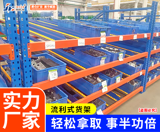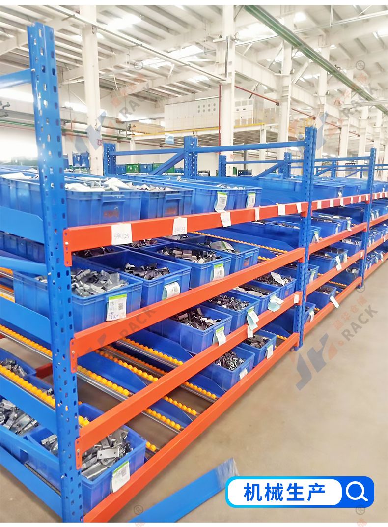 流利式貨架常由中型橫梁式貨架演變而成,通過滾道將貨物從配貨端輸送到取貨端,貨物借助重力自動(dòng)下滑,可實(shí)現(xiàn)“先進(jìn)先出”作業(yè),使用成本低,存儲(chǔ)速度快、密度大。通常使用在企業(yè)的精益生產(chǎn)流水作業(yè)。